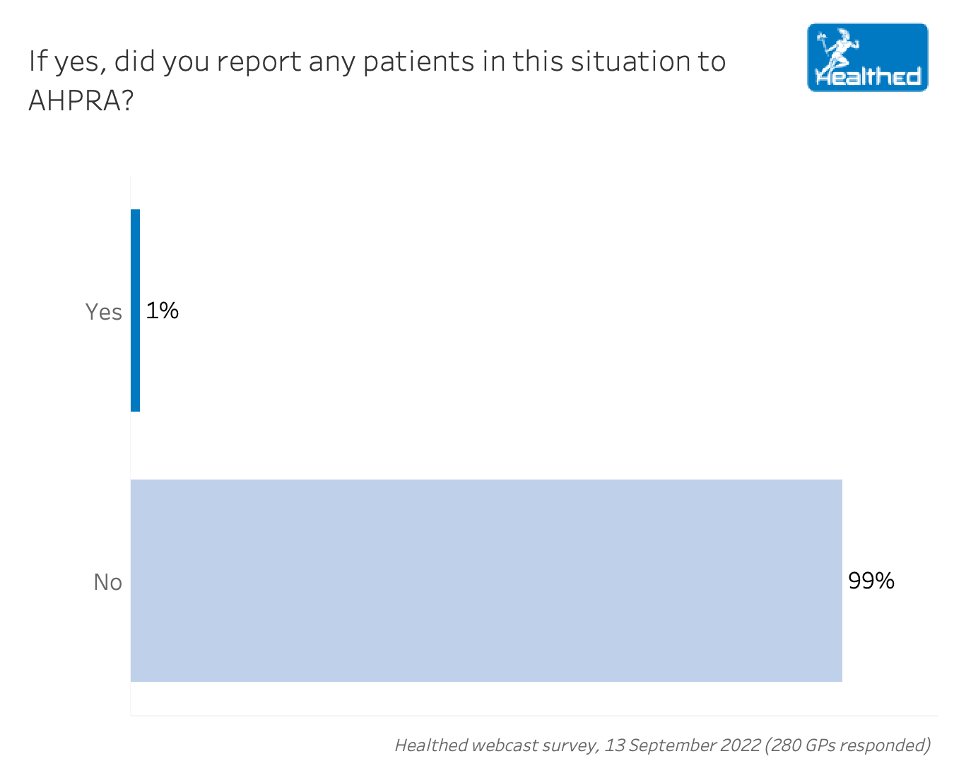 Only 1% of 280 GPs said they had reported these incidents to AHPRA in the Healthed survey.