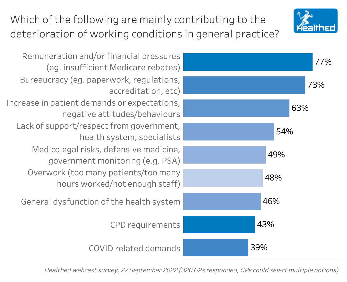 The 27 September survey was inspired by a previous Healthed survey, in which GPs provided scathing comments about current working conditions.