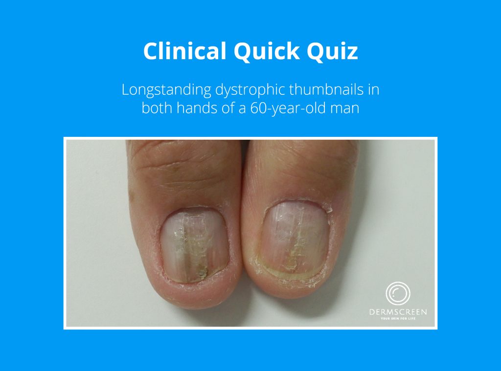 Clinical Quick Quiz – What is the most likely diagnosis for these dystrophic thumbnails?