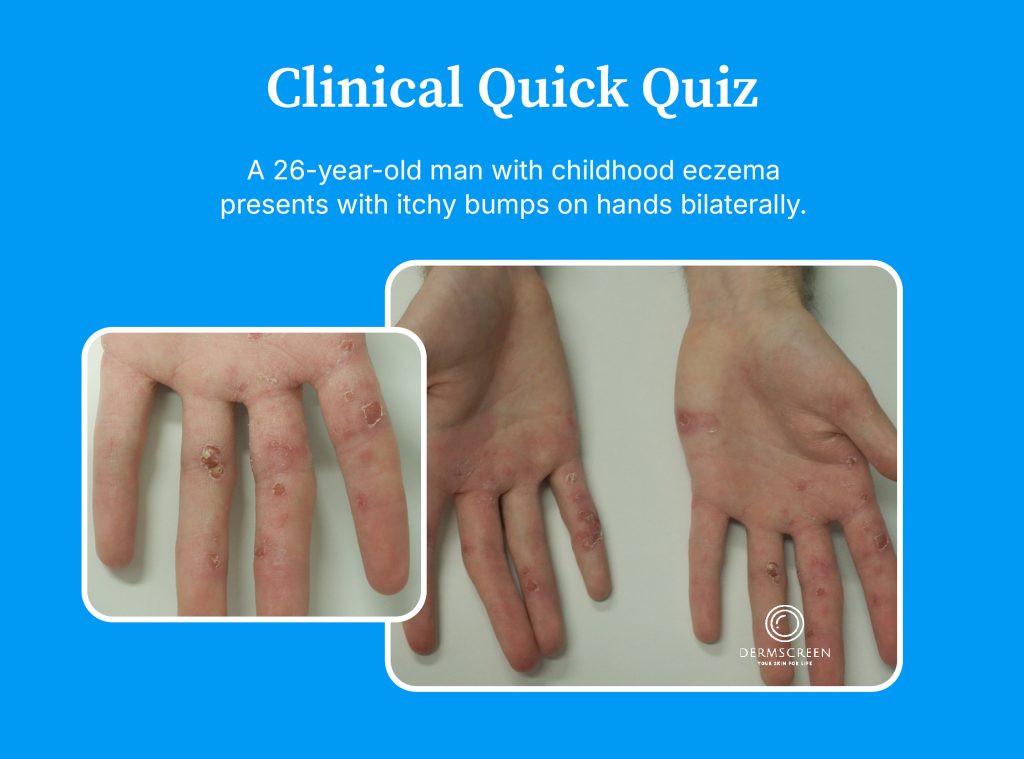 Articles / Clinical Quick Quiz – What is the most likely diagnosis for these itchy bumps on hands?