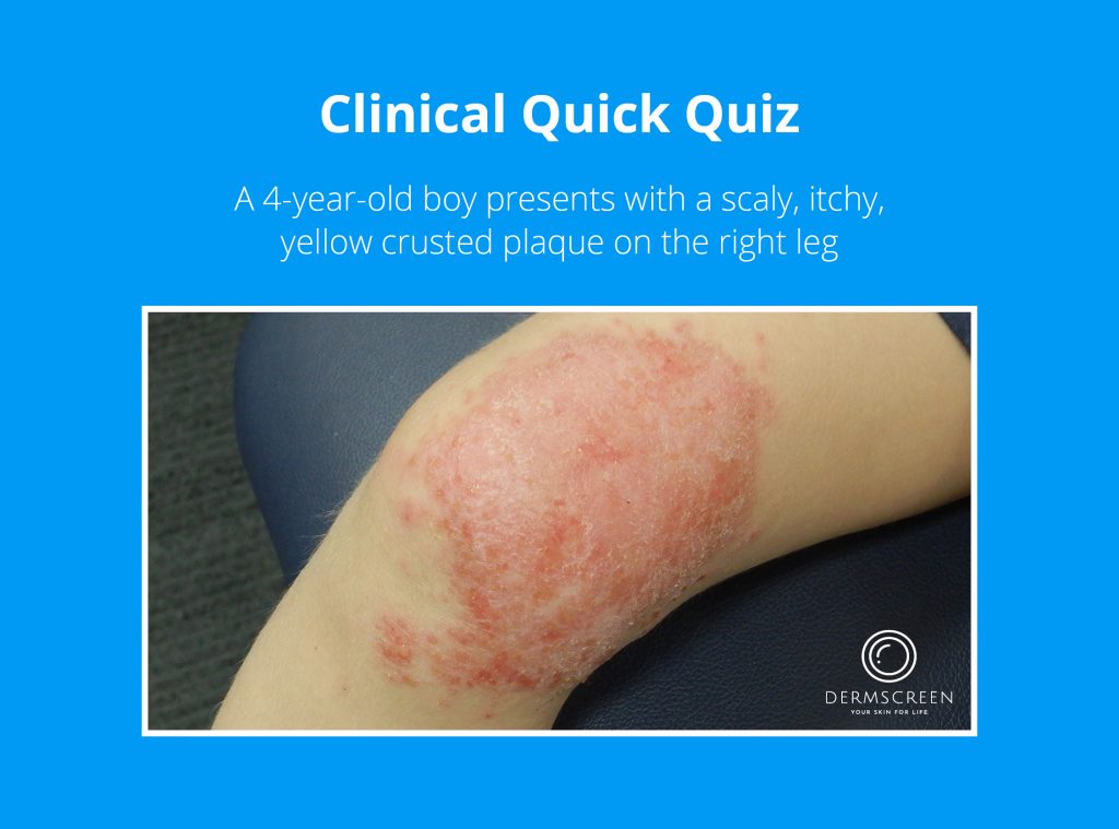 Clinical Quick Quiz – What is the most likely diagnosis for this yellow crusted plaque?