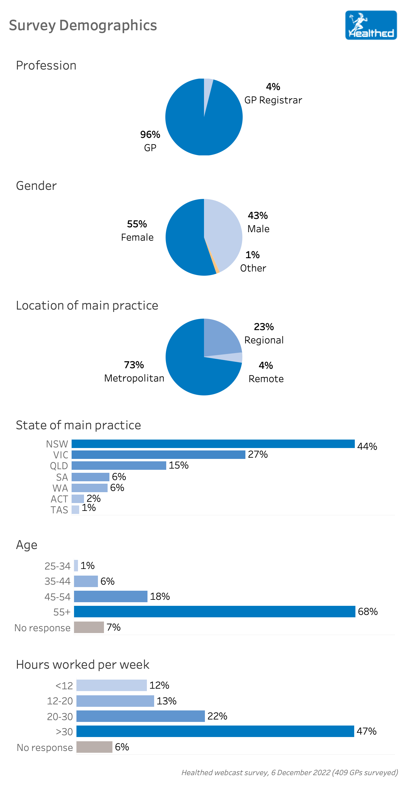 “The pandemic is not over and GPs are continuing to witness the direct impact of mortality and morbidity from COVID-19 and delay in presentations for serious non COVID-19 conditions,” Professor Rowe said. “The threat of a recession is looming and causing economic stress in Australia. Of course, the other common issues predisposing our patients to burnout and mental illness are ongoing.”