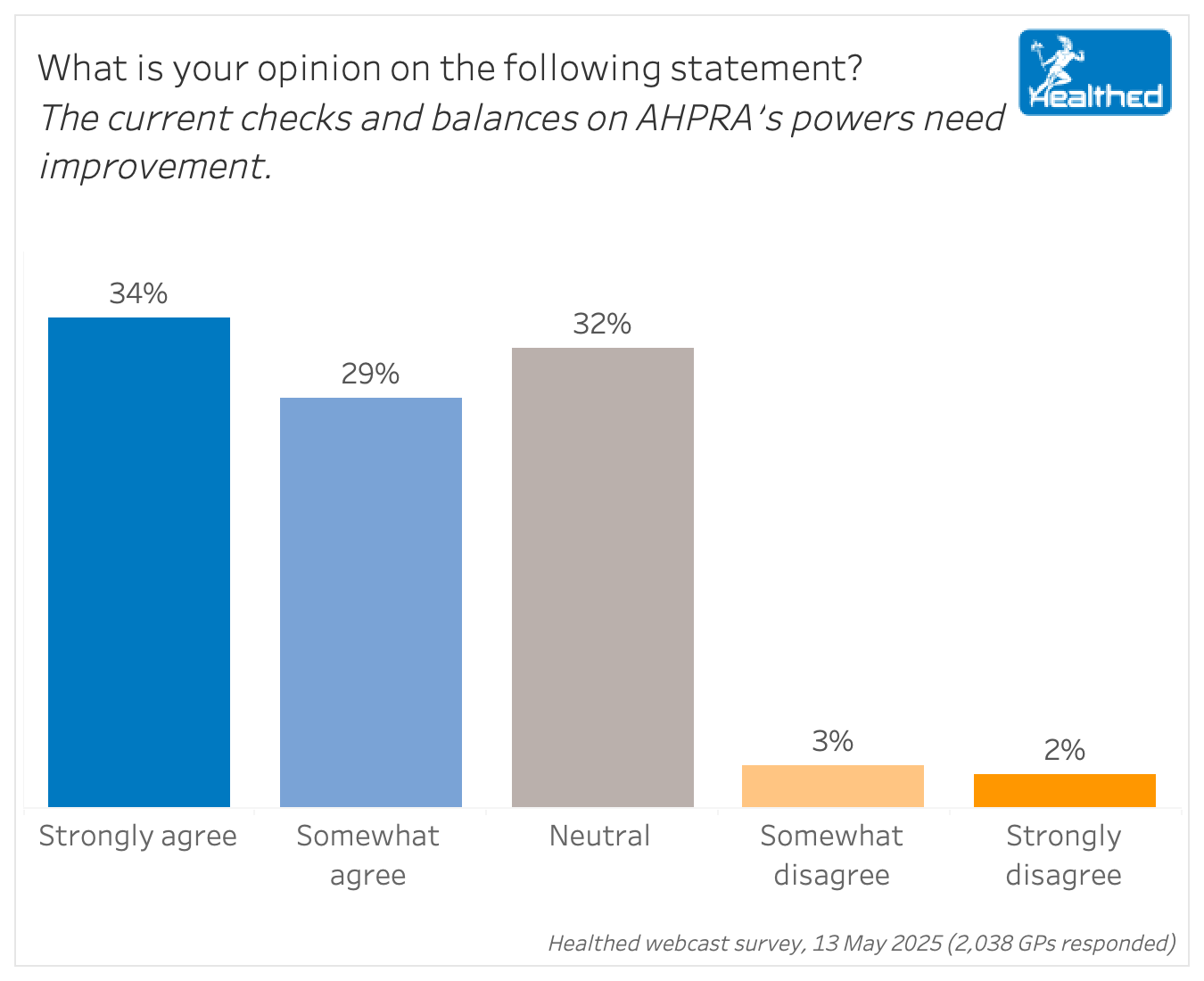Sixty-three percent of GPs said the current checks and balances on AHPRA’s powers need improvement, with more than a third strongly agreeing with that statement.