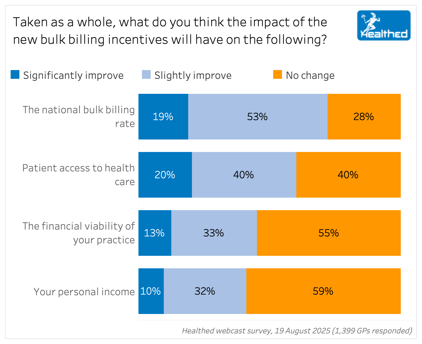 GPs from mixed billing practices made up 69% of survey respondents and only 8% of them think the new policies will significantly improve the financial viability of their practices, while 31% expect a slight improvement.