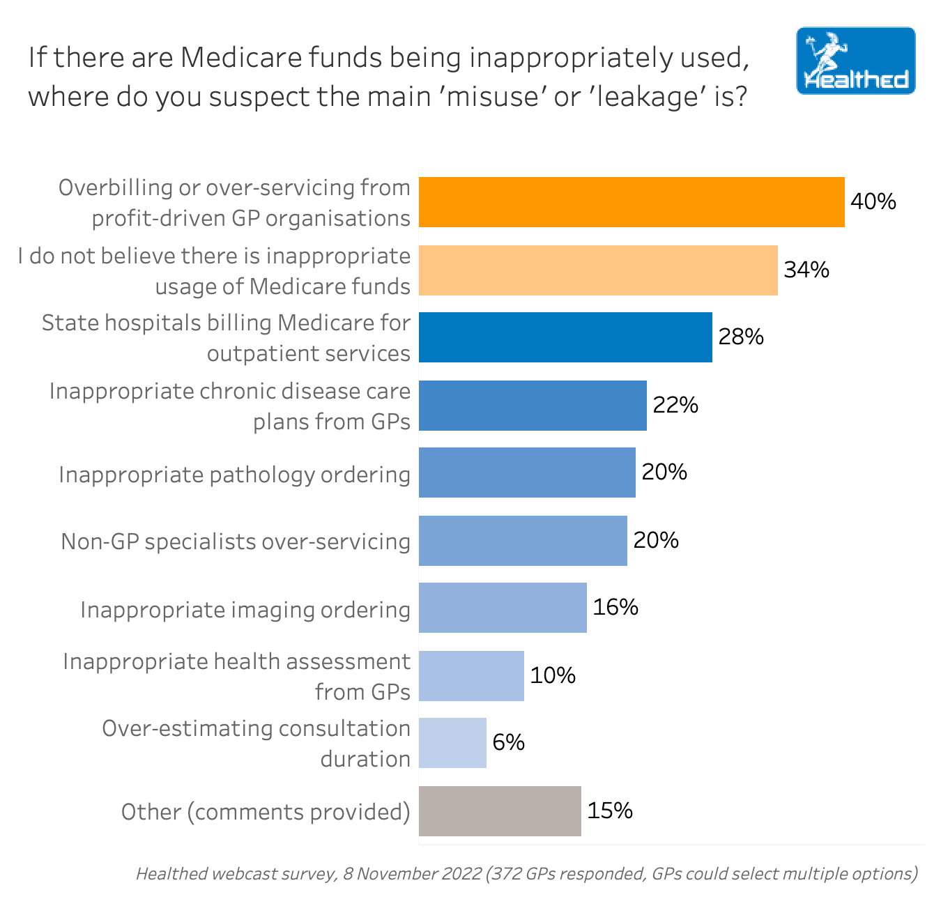 But many GPs also felt under-billing was an important issue, contributing to financial pressure and burnout. More than two-thirds of surveyed doctors said they underbill, suggesting that Medicare leakage goes both ways.