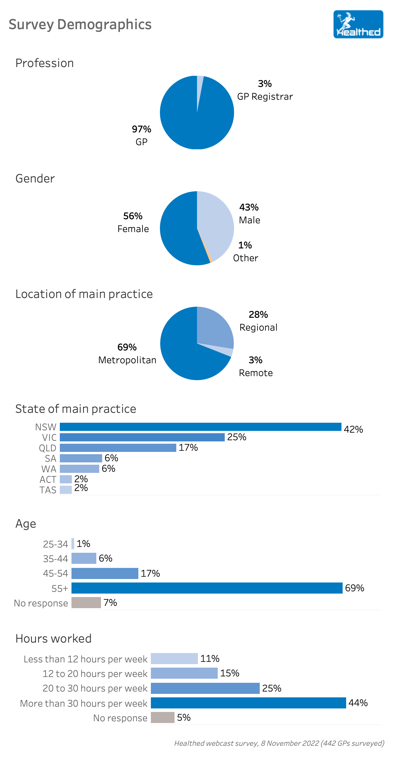 GPs also noted the disparity between GP billing and that of their medical peers, as well as the need for rebates that “reflect the responsibility of the work we perform,” and for improved after hour attendance fees which could lessen the pressure on EDs.