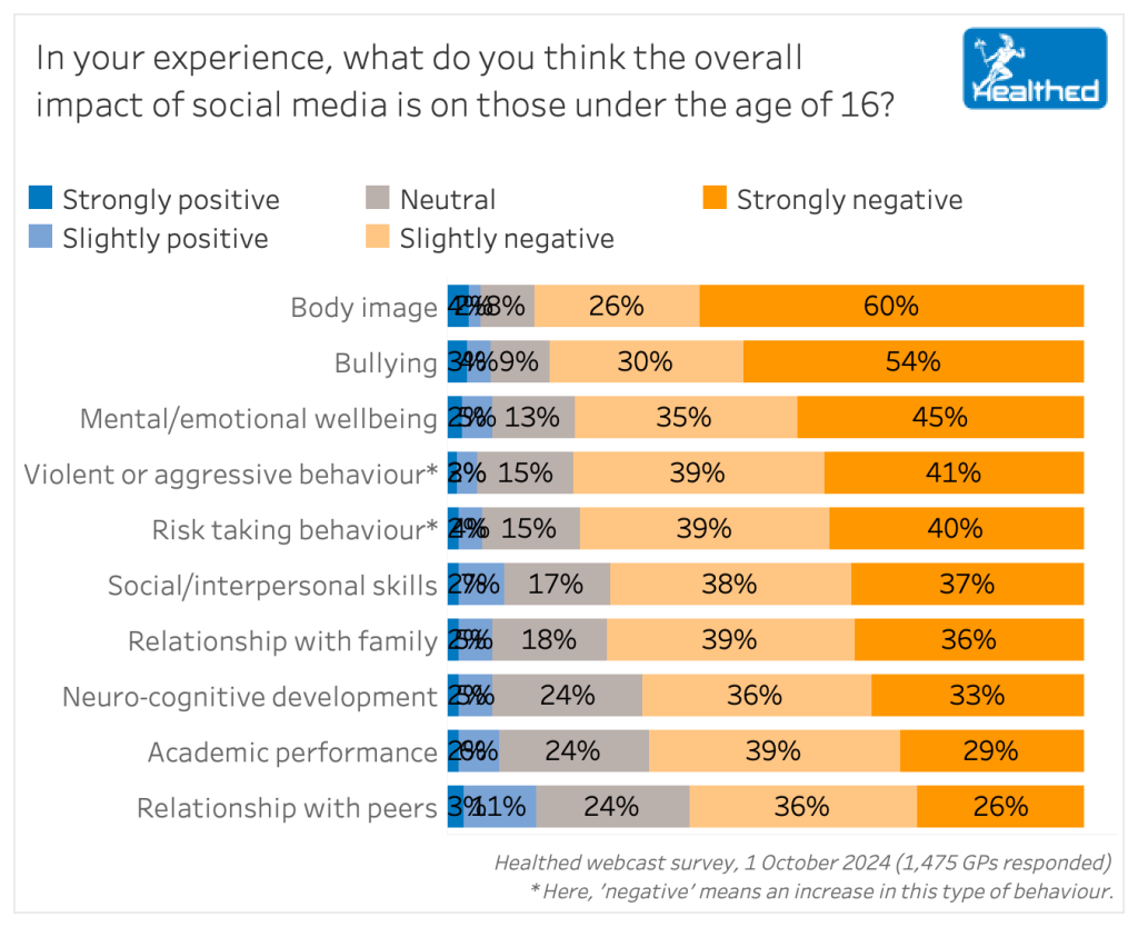 Most GPs say social media is negatively impacting children’s emotional and mental wellbeing, body image, neurocognitive development and social issues such as bullying, violent behaviour, and relationships.
