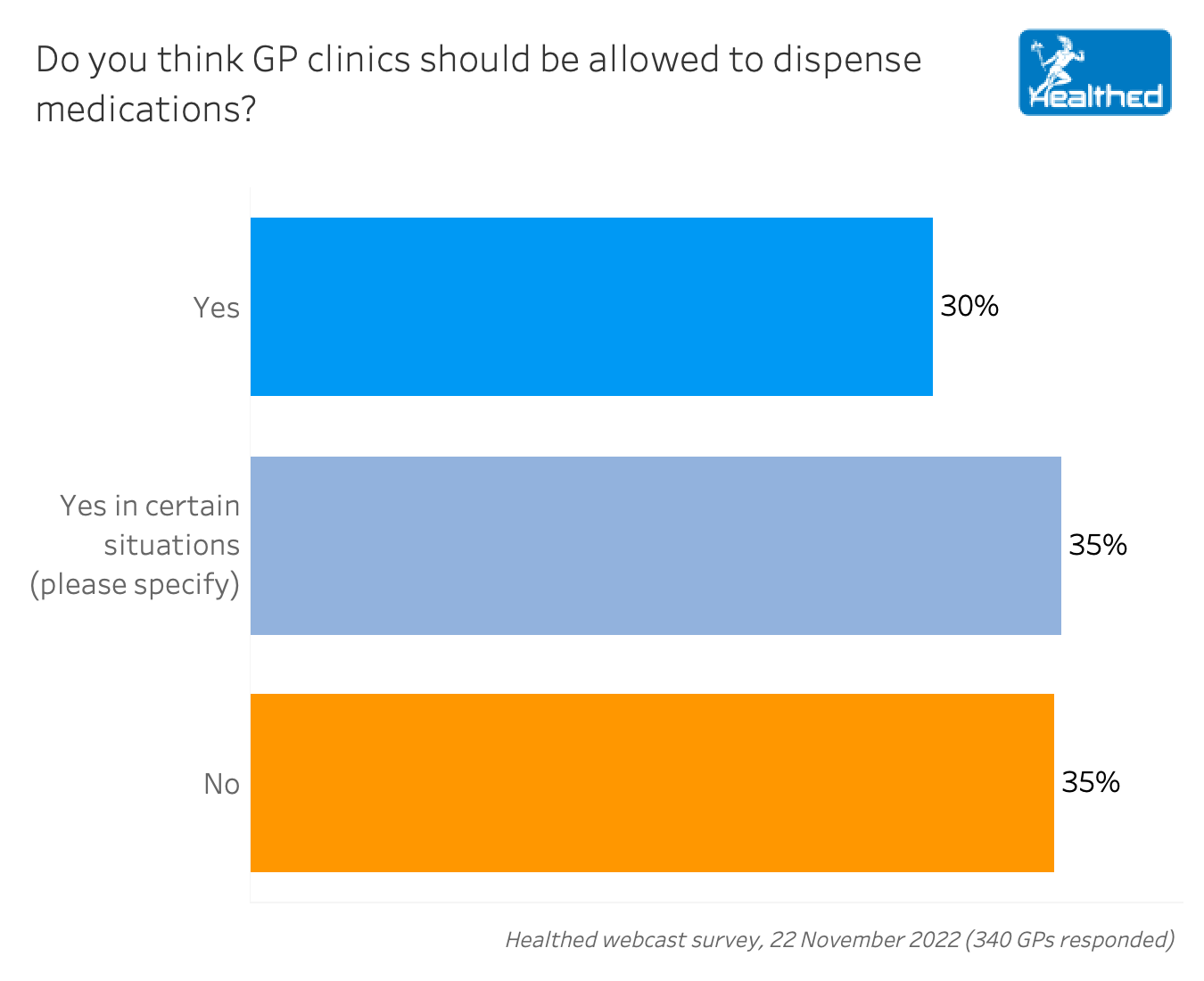 Our exclusive survey found that 65% of doctors surveyed think GP clinics should be able to dispense medicines, at least in some circumstances. Nearly a third (30%) said ‘yes’ with no caveats, while a further 35% said ‘yes, in certain situations.’