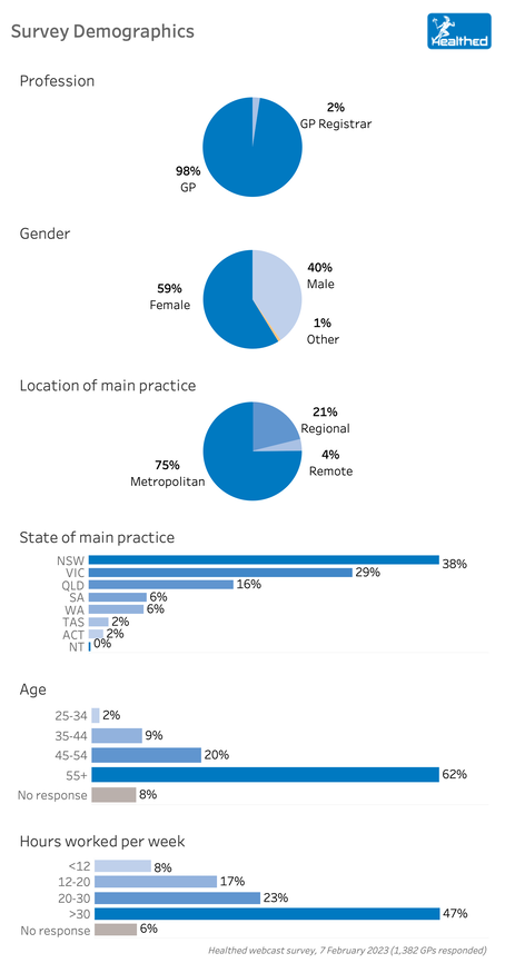 A total of 1,382 GPs responded to Healthed’s survey which opened on 7 February 2022. GPs were allowed to skip questions, which is why each question has a different number of GP participants.