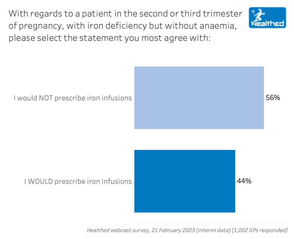 Healthed asked over 1,000 GPs if they would prescribe iron to a patient in the second or third trimester who was iron deficient but did not have anaemia.