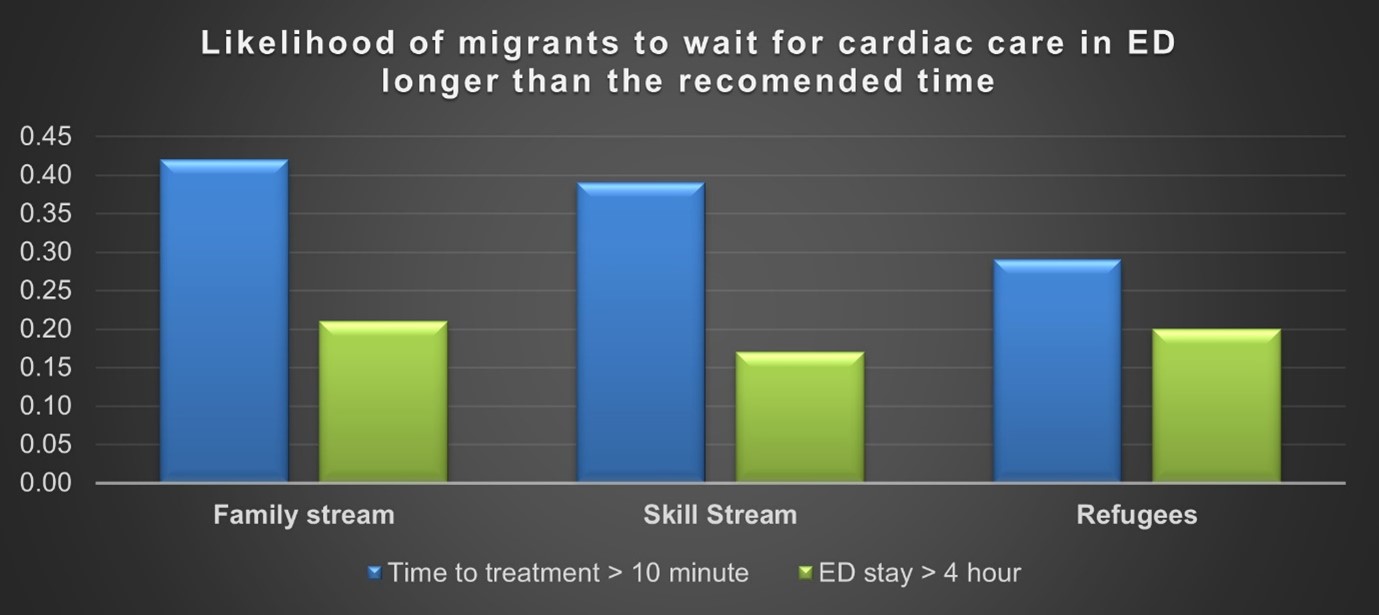 For migrants, this delay was overwhelmingly due to the patient’s decision to wait before seeking help (as opposed to, say, traffic problems in getting to a hospital, or an ambulance taking too long to arrive).