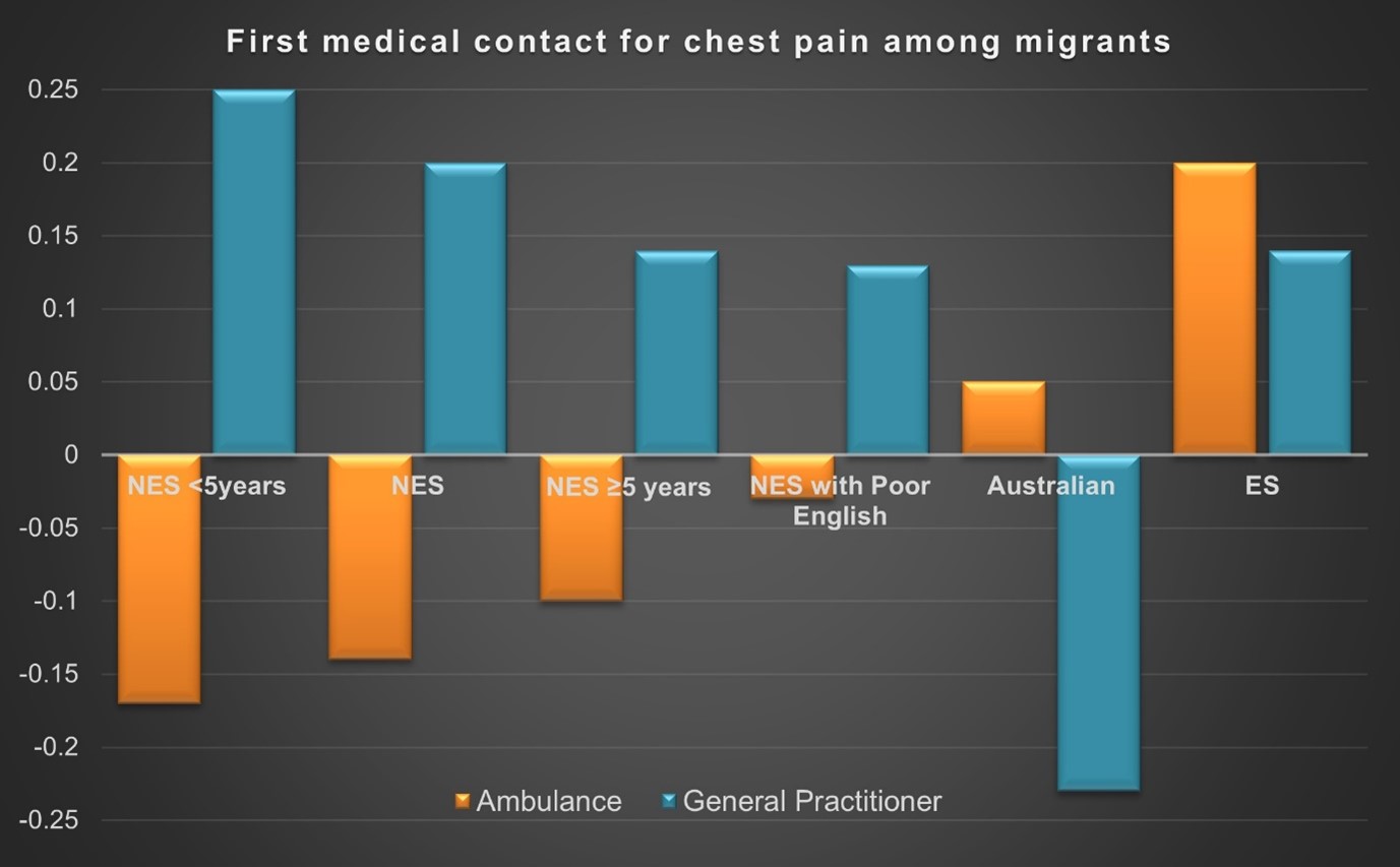 Once migrants decided to seek medical care for chest pain, they often did not call an ambulance straight away. Rather, they first opted to visit their family doctor or attempted to drive themselves to hospital. We found this was more common among migrants with limited English.
