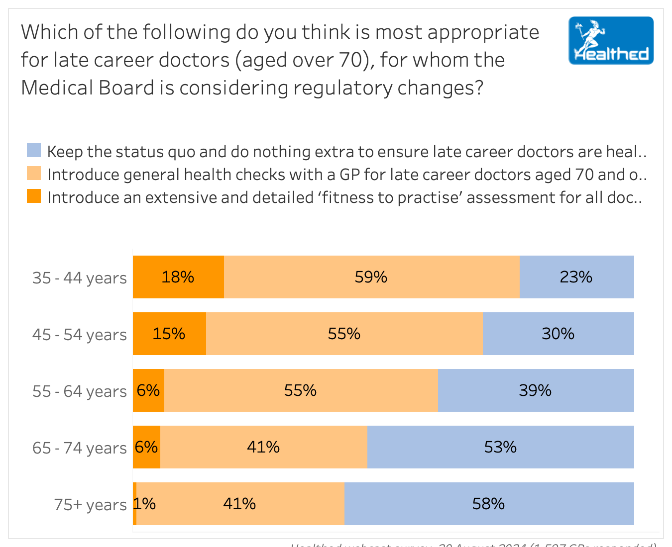 Healthed survey shows a clear divide between older and younger GPs when it comes to support for the proposal. For example, half of GPs aged over 60 want to maintain the status quo, while just 30% of GPs under 60 think that is the best response.
