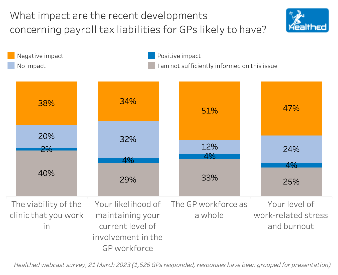 More than half of surveyed GPs (51%) said the payroll measure would negatively impact the GP workforce more broadly.
