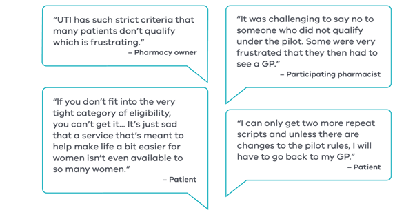 Patients, pharmacists and consumer advisory groups recommended expanding service eligibility, with the evaluation highlighting their complaints about the exclusion criteria that exist to reduce risks and ensure safety.