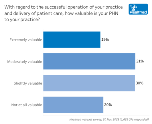 Demonstrating the polarisation, about one in five GPs rated their PHN as “extremely valuable,” with the same proportion saying their PHN was “not valuable at all.”