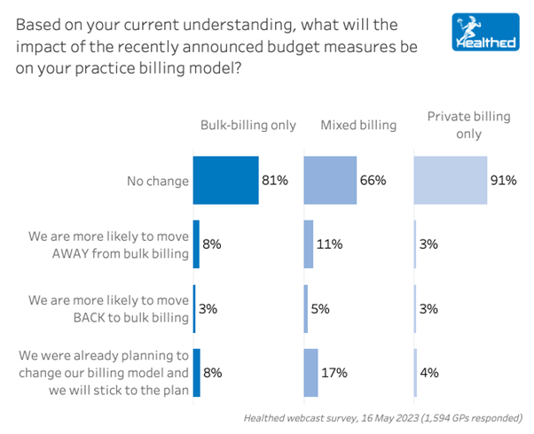 Moreover, more than 70% of GPs say that the budget changes will not affect their practice billing model—despite the government’s stated intentions to improve bulk-billing rates.
