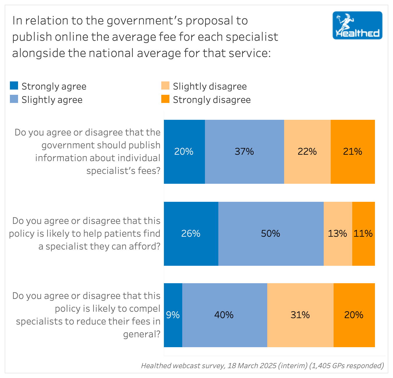 Fifty-seven percent of more than 1400 GPs who have responded to Healthed’s survey so far say they support the Government publishing specialists’ fees.