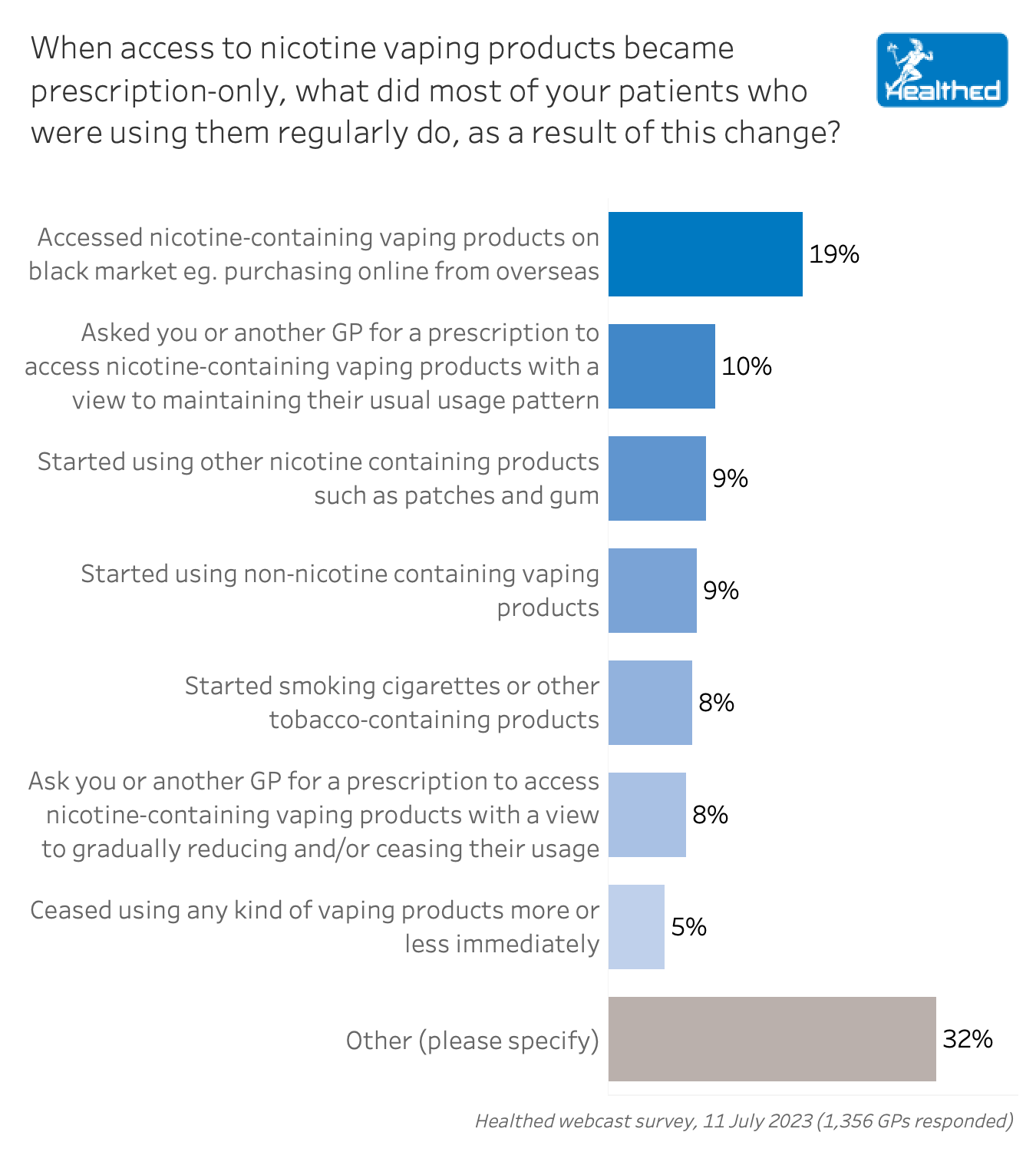 In a Healthed survey last month, about one in five GPs reported that when nicotine vaping became prescription only, most of their patients accessed them on the black market instead.