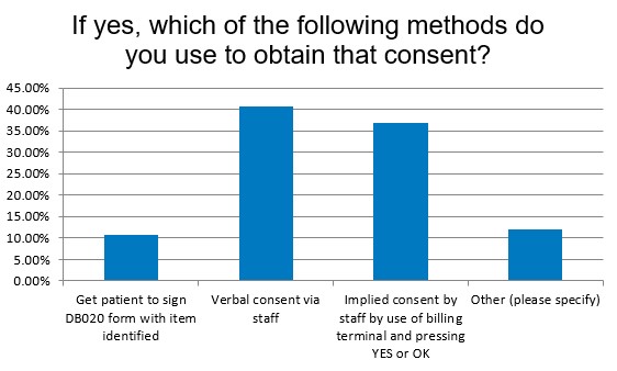 And of those who knew of this rule, there were still inconsistencies in how the term ‘explicit consent’ was interpreted. About one in 10 GPs (11.06%) got patients to sign a DB020 form in which the item number being billed was identified. The rest relied on a more vague sign of agreement on the part of the patient – namely verbal consent to the staff or implied consent by agreeing to the consultation.