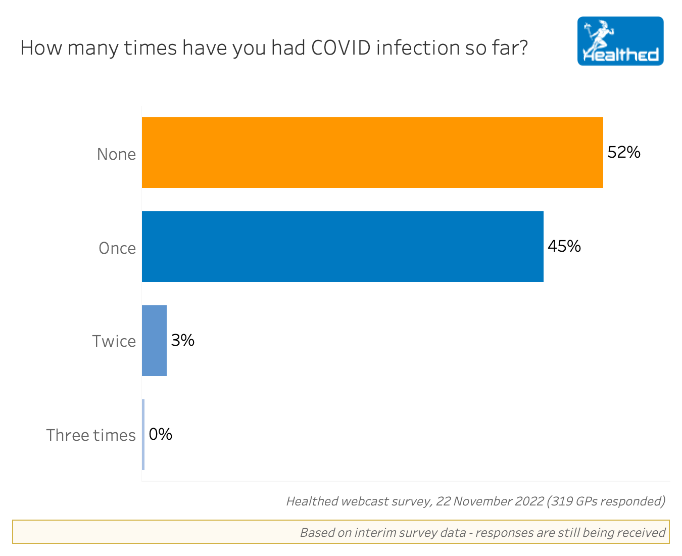 Healthed’s exclusive survey data reveals that more than half of GPs have not yet had COVID – 52% of 319 GPs surveyed.